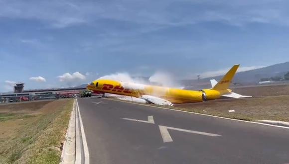 Un vuelo de la empresa de logística y Carga sufrió grave accidente el jueves durante un aterrizaje de emergencia en el aeropuerto Internacional Juan Santamaría, en Costa Rica y como consecuencia, terminó partido en dos.