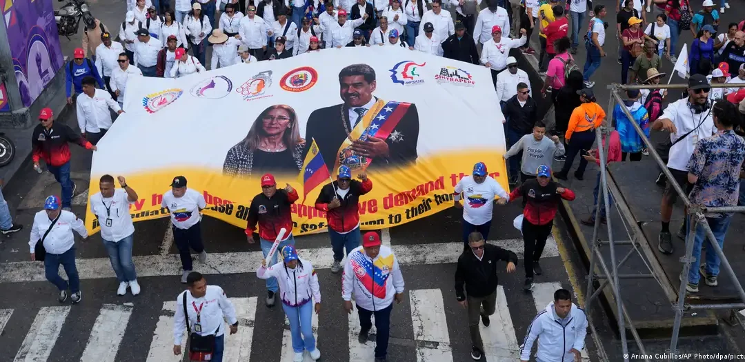 Las manifestaciones, integradas principalmente por empleados públicos y militantes del PSUV, recorrieron las calles hacia el Palacio de Miraflores bajo consignas antiimperialistas.