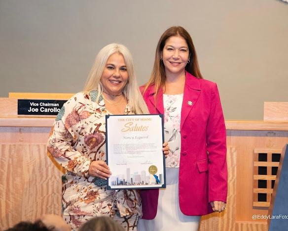 La reconocida líder comunitaria, escritora y fundadora de Doral Voice Radio, Nancy Esquivel, recibió un reconocimiento por parte de las autoridades municipales de la Ciudad de Miami en un emotivo evento que se desarrolló en el salón principal del Miami City Hall.