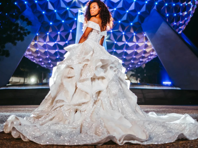 Disney presentó el miércoles un vestido de novias que rinde tributo al 50 aniversario de Walt Disney World, en Florida, y que consiste en un modelo de edición limitada con más de 15.000 perlas y 3.000 cristales brillantes.