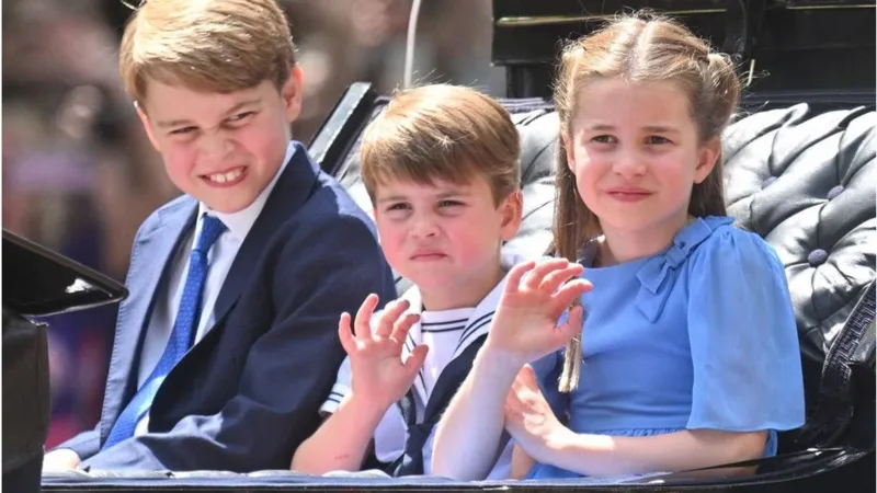 Sin embargo, durante estas celebraciones, sus bisnietos se robaron el protagonismo con sus divertidas reacciones desde el balcón del Palacio de Buckingham donde también estaban el príncipe William, y Kate Middleton. George (8 años), Louis (4) y Charlotte (7) son los hijos de Kate (40) y del príncipe William (39), hijo primogénito del príncipe Carlos (73), explica BBC.