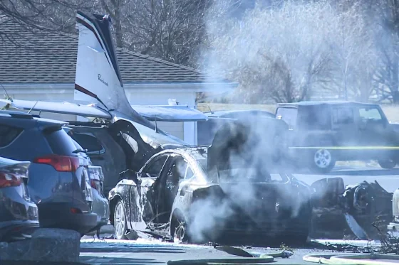 Precisaron que varios vehículos en el lugar resultaron dañados pero que la aeronave no impactó el edificio de residencias. «No hay daños a la estructura».